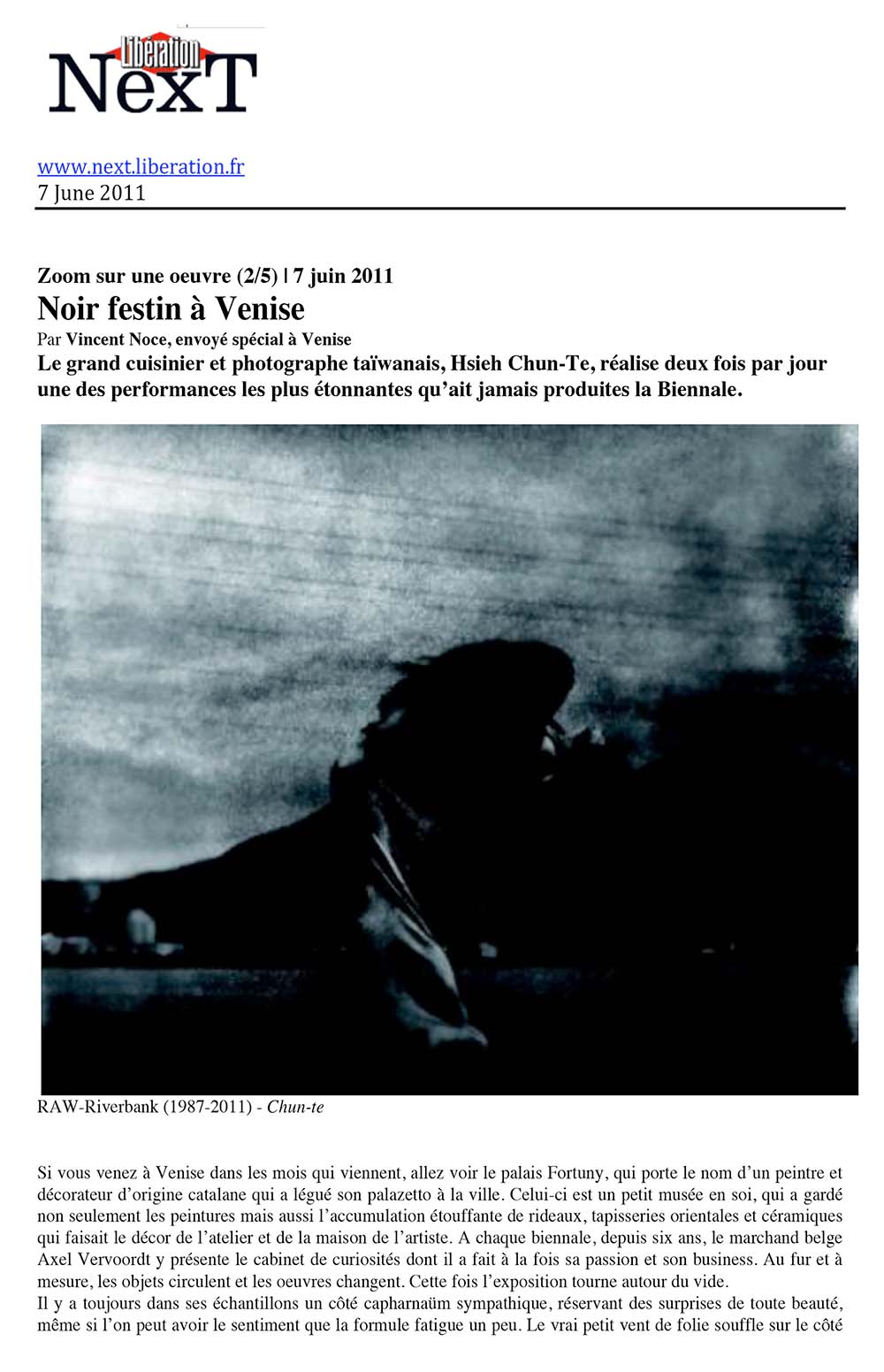Quote 2: “Noir Feast in Venice: A staggering performance by Taiwan’s great culinary director and photographer, Hsieh Chun-Te—staged twice daily and among the most extraordinary acts in the Biennale’s history.”